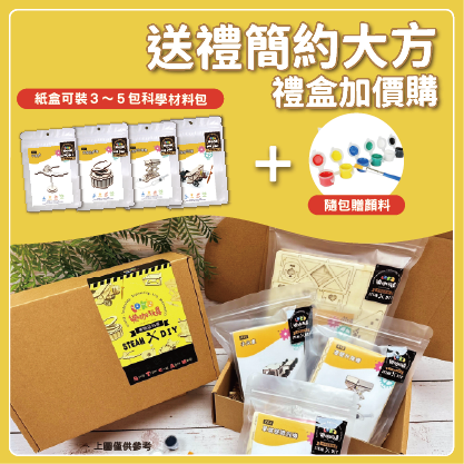 ➤「買一送一」:買一包樂咖玩科學系列材料包,送一包6色彩繪顏料。